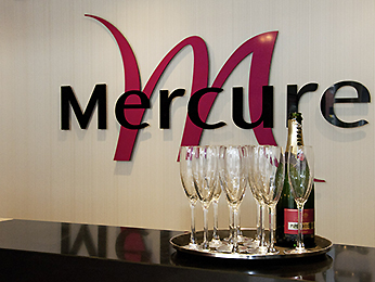 We schreven er al eerder over, maar wilden u het eindresultaat van deze mooie bewegwijzering niet onthouden. De uitvoering van dit logo is in de vorm van kunststof letters op een interieurwand bevestigd. Foto’s Mercure Hotel